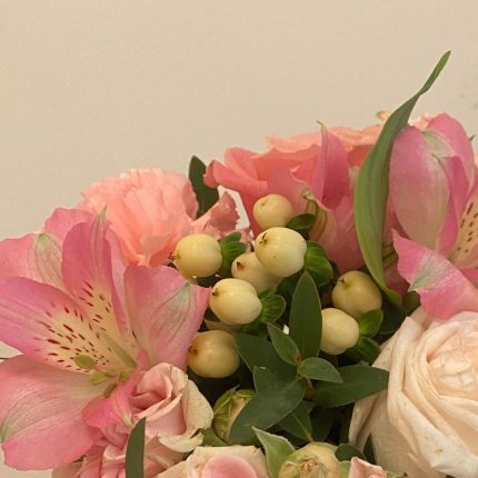 Нежная Джульетта(Роза кустовая Пионовидная Джульетта ,диантус,Альстромерия )