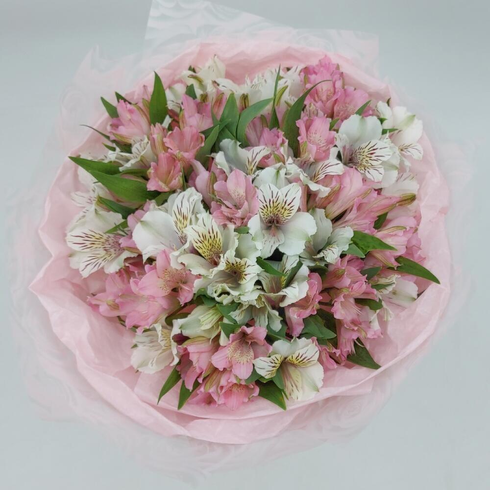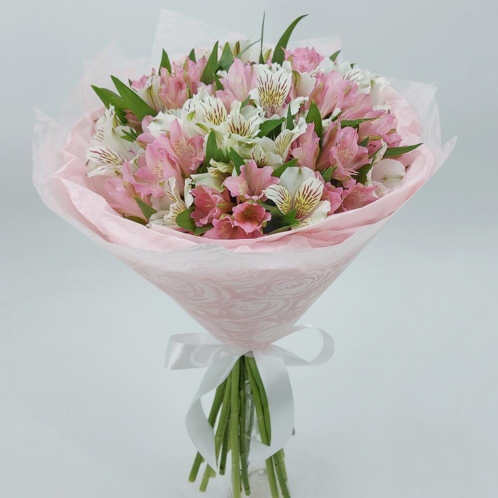 Альстромерия – 19 шт. Упаковка дизайнерская – 1 шт. Открыточка с вашими пожеланиями – 1 шт. доставка – 1 шт. инструкция по уходу за цветами – 1 шт.