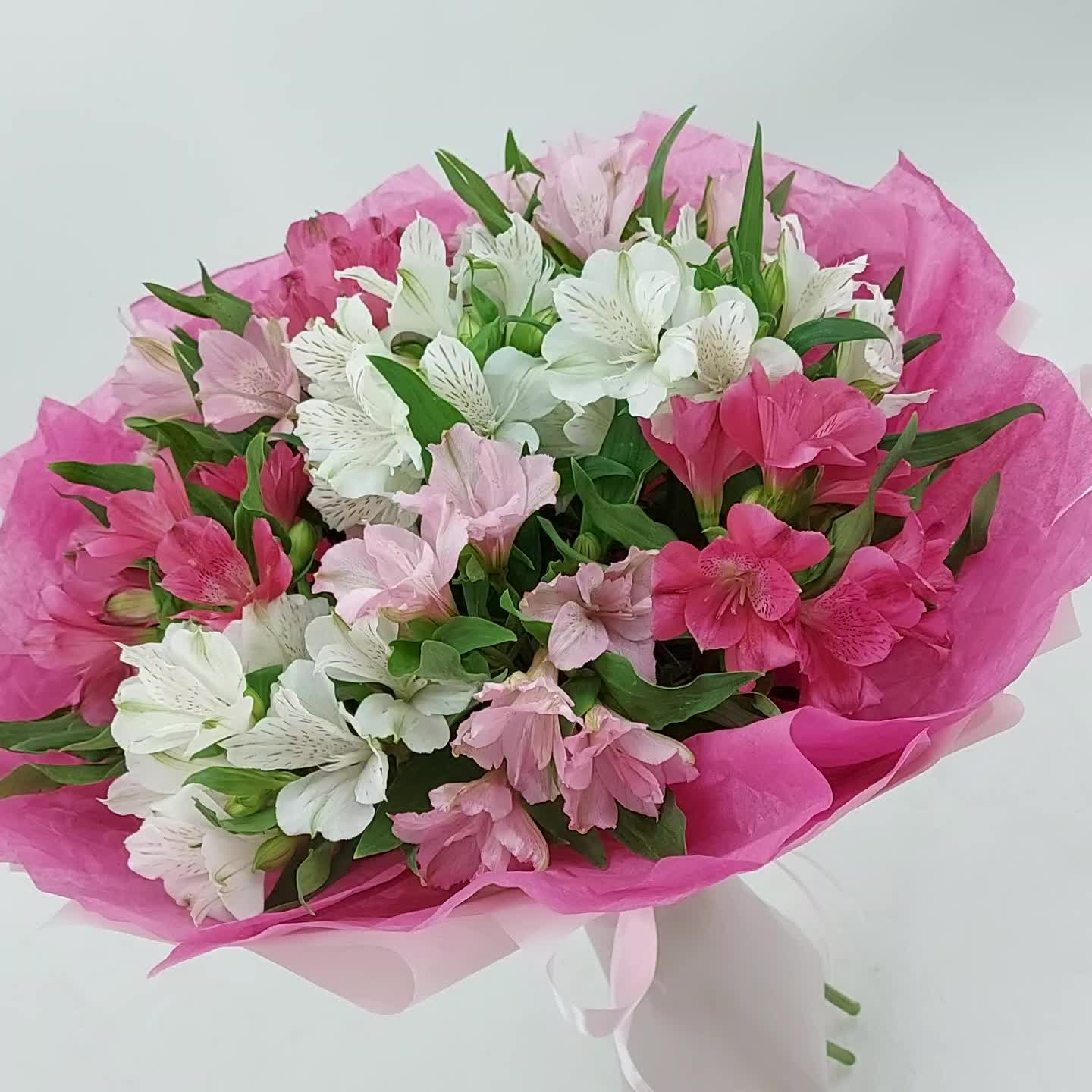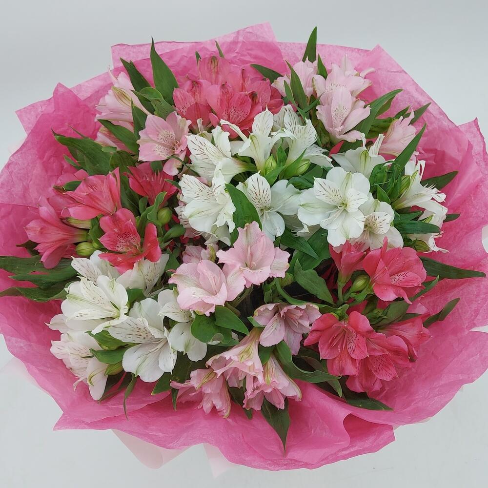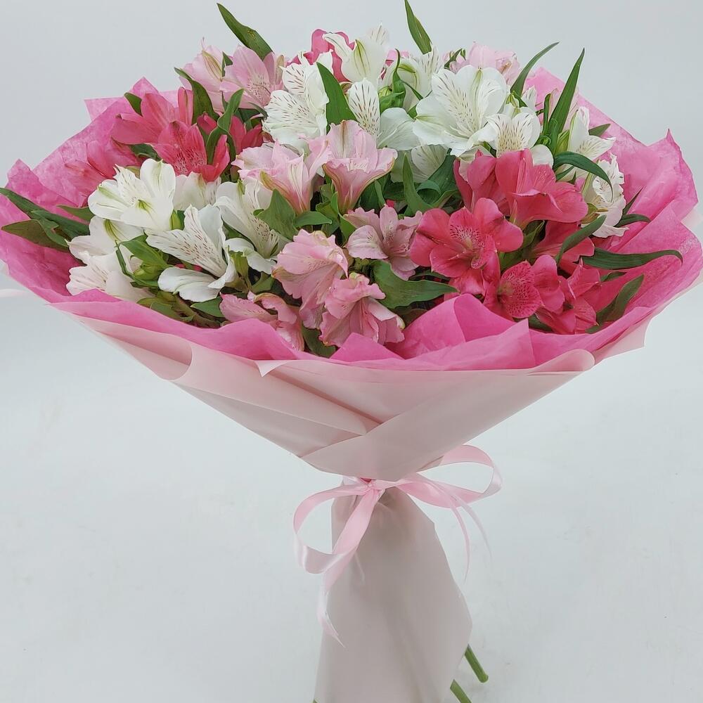 Яркие, стойкие альстромерии в стильном монобукете. Такой букет всегда уместен и подойдёт для любого повода: День Рождения, именины, годовщина свадьбы, рождение ребенка, 8 марта, День Святого Валентина, выпускной и т.д. Можно вручить маме, сестре, подруге, коллеге, учителю, любимой.