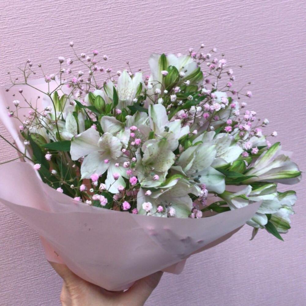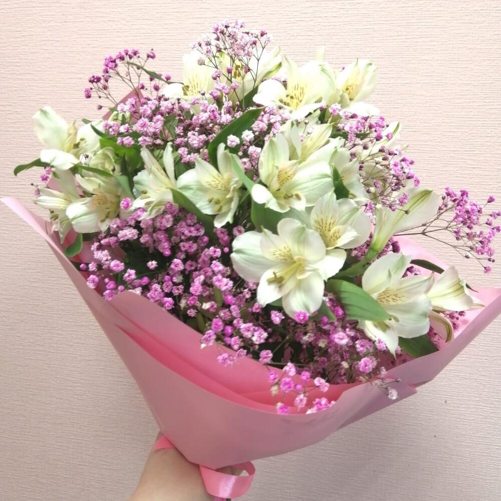 Букет Розовое облако с альстромерией и гипсофиллой