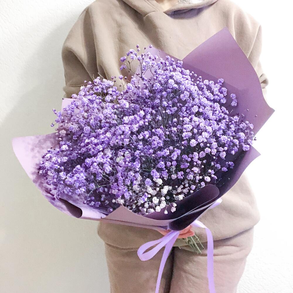 Гипсофила – 7 шт.Упаковка корейская пленка – 2 шт.Лента атласная – 1 шт.