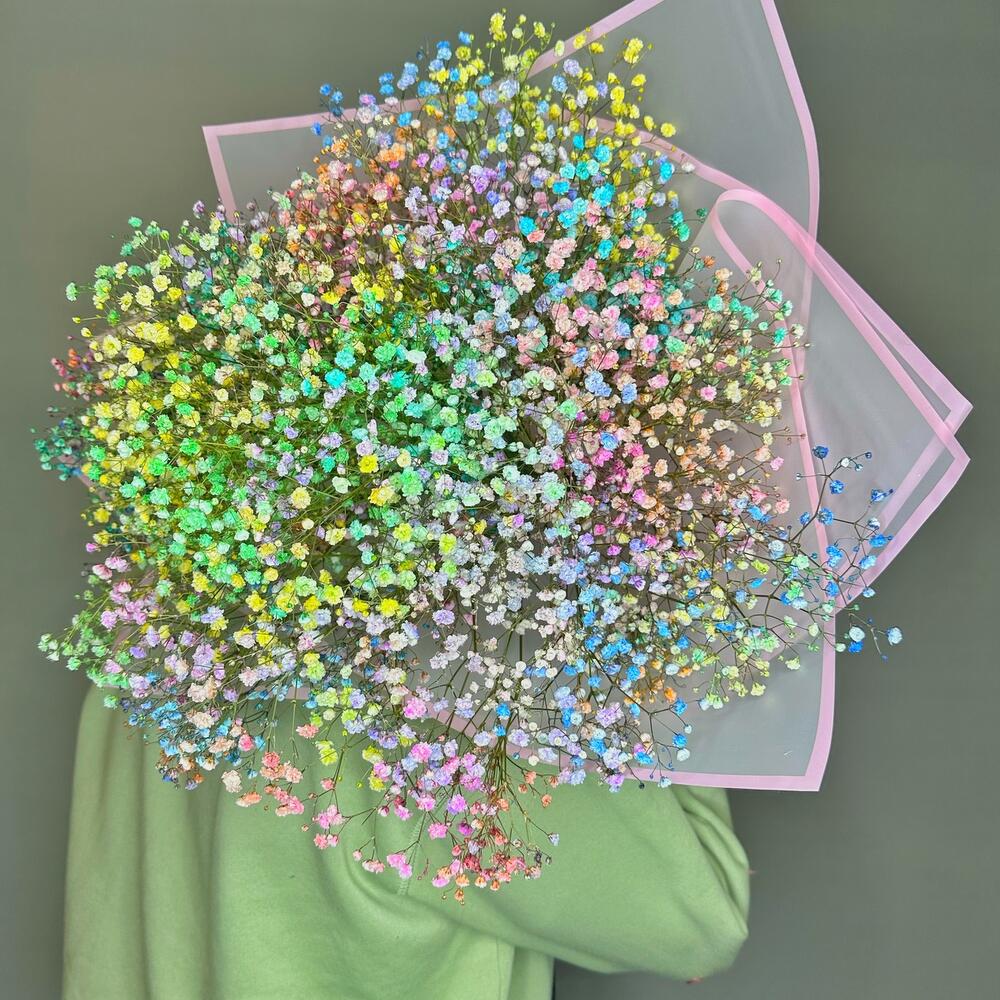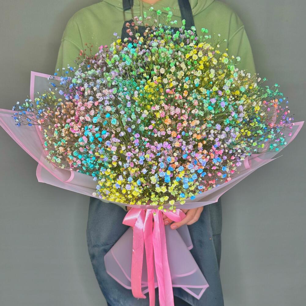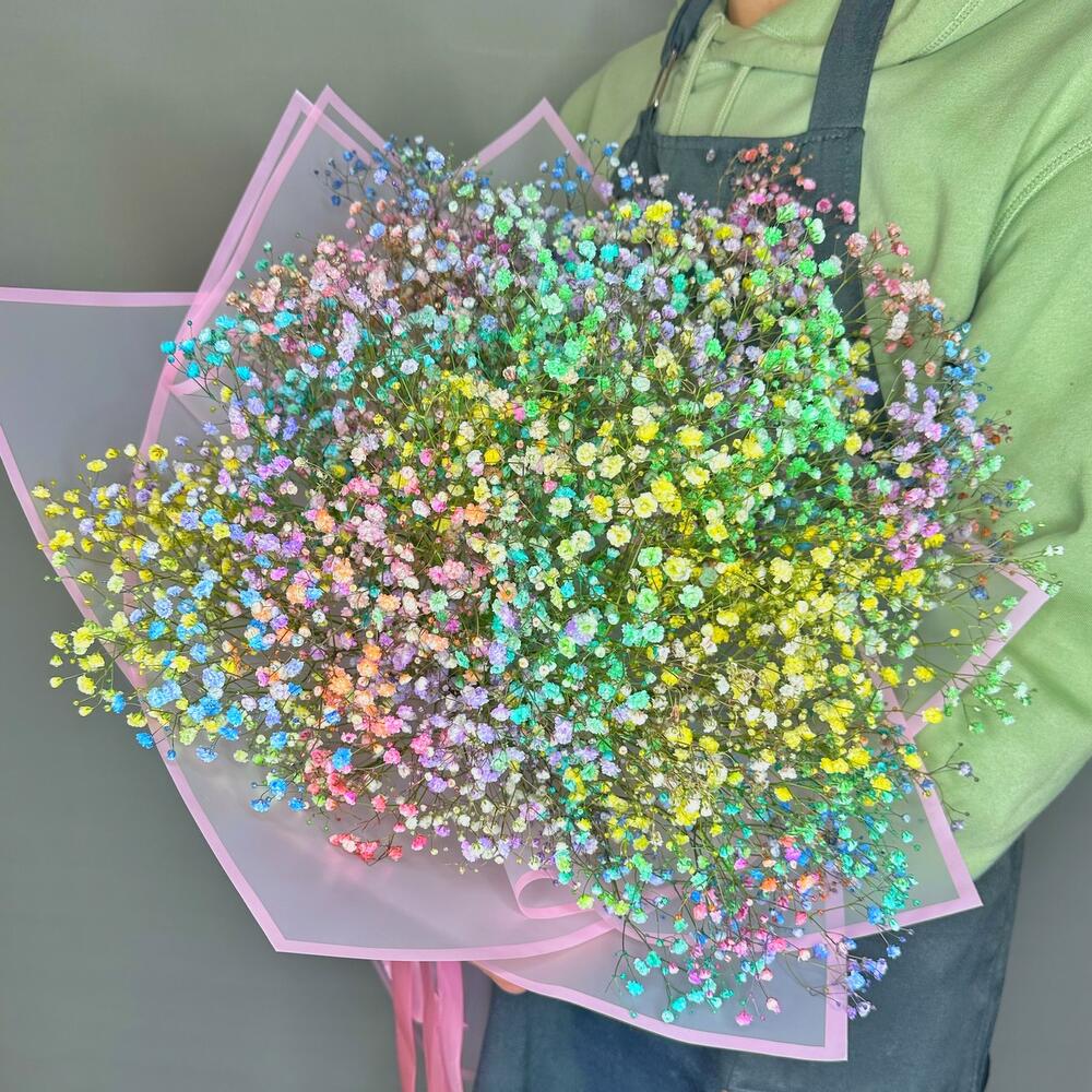 Гранд букет из цветной гипсофилы “Охапка радуги”