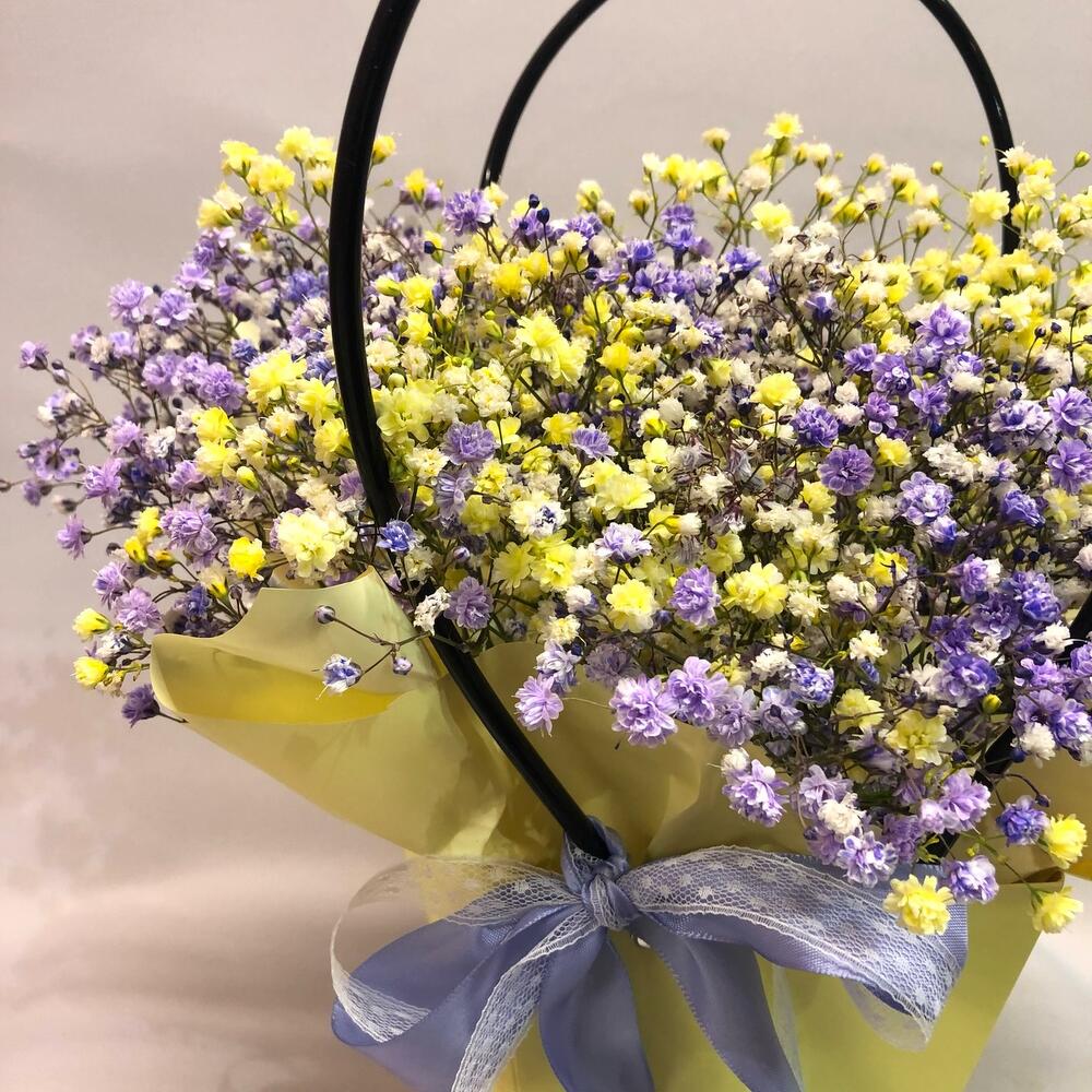 «Лавандовое созвездие» Букет из розы, гвоздики, статица и хлопка