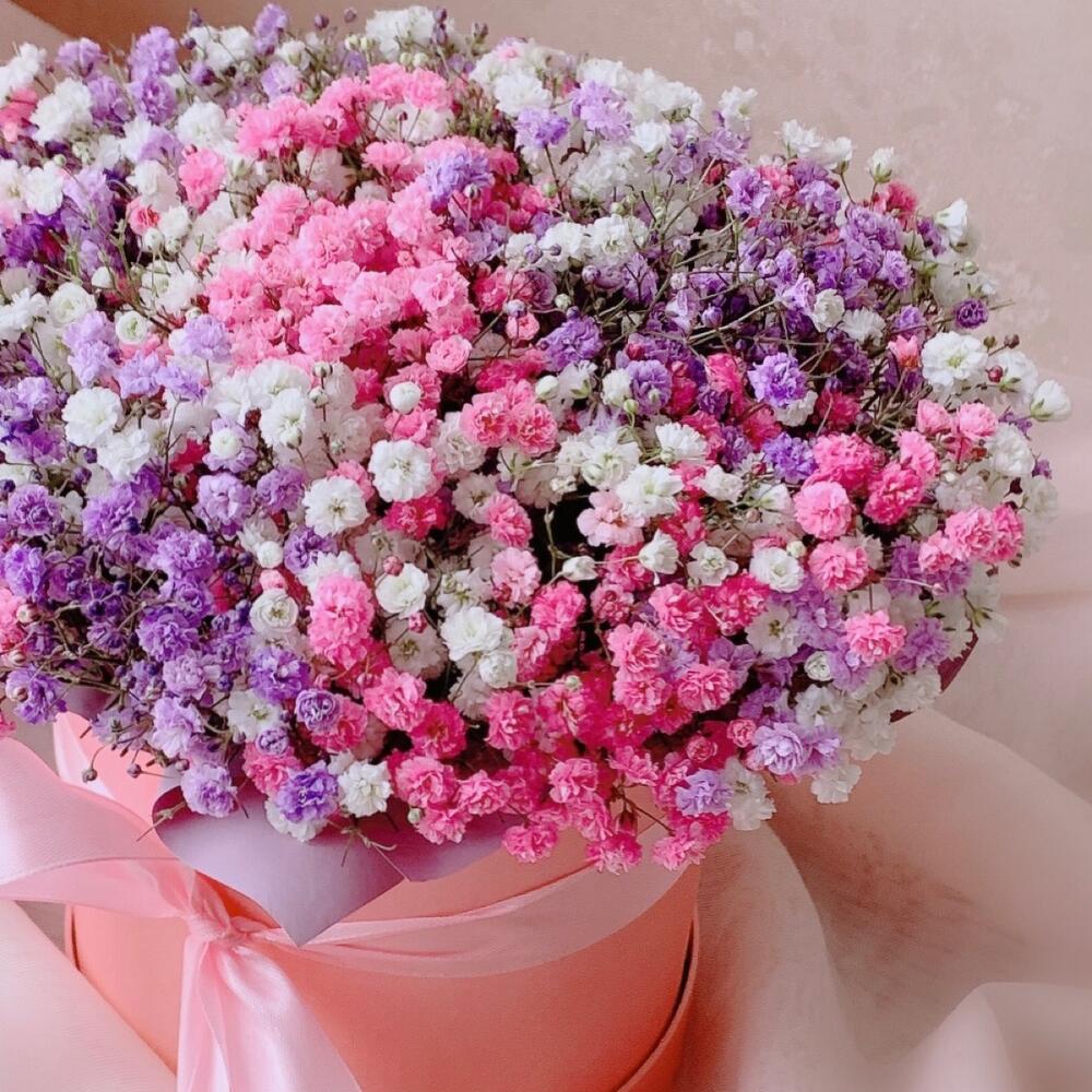Очаровательная композиция из изысканных свежих цветов.Наполнена множеством соцветий радужной гипсофилы. Собрана в стильной шляпной коробке.Композиция из гипсофилы – необычный подарок, который удивит своей невероятной стойкостью, при правильном и простом уходе.❤️ Ставить композицию в прохладном месте, избегая отопительных приборов и прямых солнечных лучей. ❤️ Подливать немного воды в серединку.Гипсофила не вянет, а становится сухоцветом, сохраняя свой вид. Поэтому композиция продолжит радовать ещё очень долго!Почему выбирают нас? – Работаем на качество. – Бережно упакуем в транспортировочную пленку, чтобы защитить во время доставки от любых погодных условий. – Приложим инструкцию, как правильно ухаживать за цветамиСохраняйте товар в подборках, чтобы не потерять