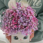 “Сиреневый туман” – композиция из гипсофилы в шляпной коробке