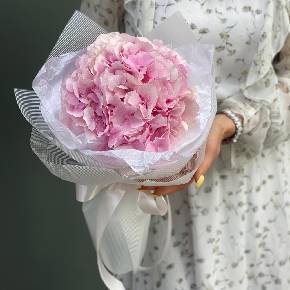 Букет из одной ветки нежно розовой гортензии в оформлении!