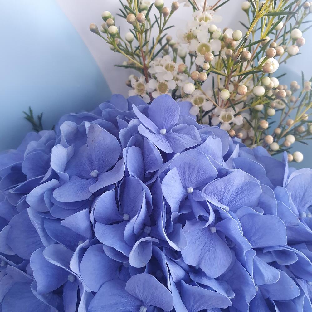 Букет с гортензией и ваксфлауэром