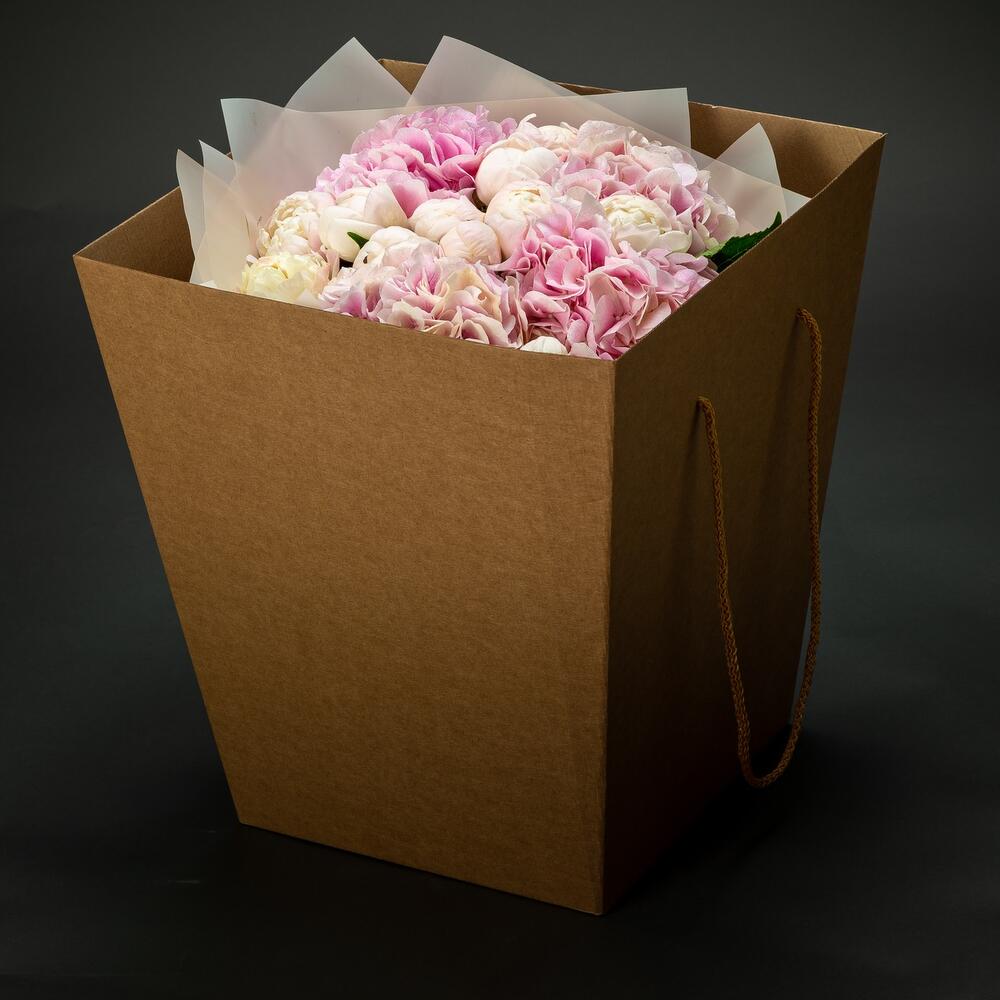 гортензия премиум розовая – 4 шт.пион белые премиум класса – 13 шт.Упаковка дизайнерская – 2 шт.хорошее настроение – 5 шт.Лента атласная – 3 шт.