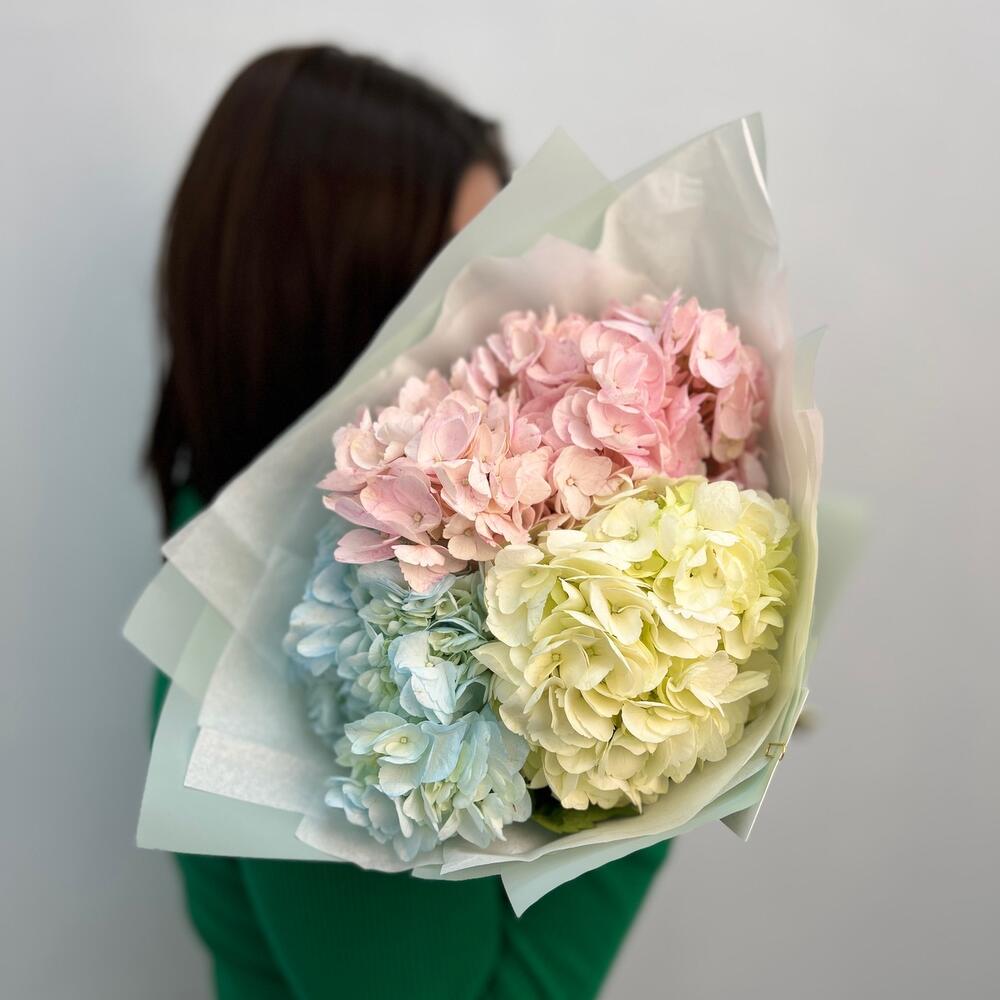 Гортензии в дизайнерской упаковке