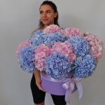 Гортензия – 21 шт.Лента атласная – 2 шт.Коробка шляпная – 1 шт.Оазис флористический – 6 шт.