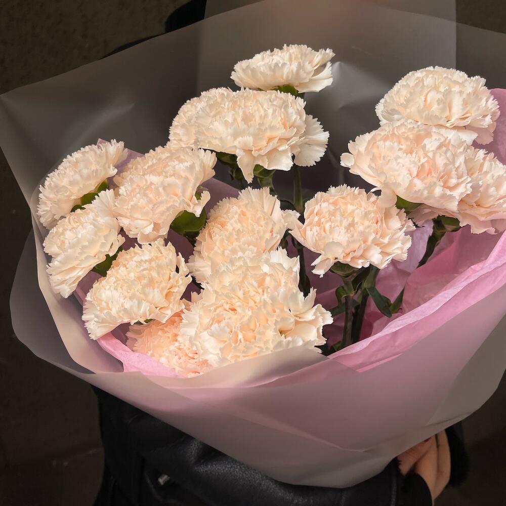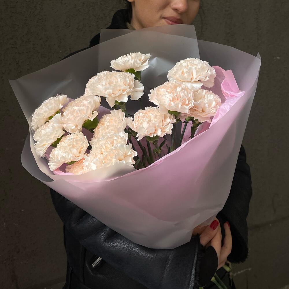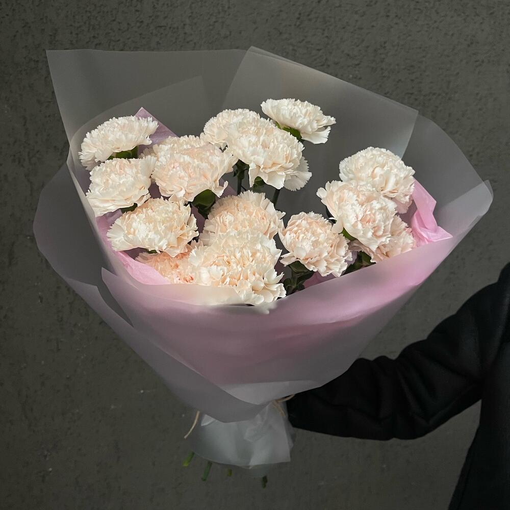 Букет 28 из кустовых пионовидных роз и сортового диантуса