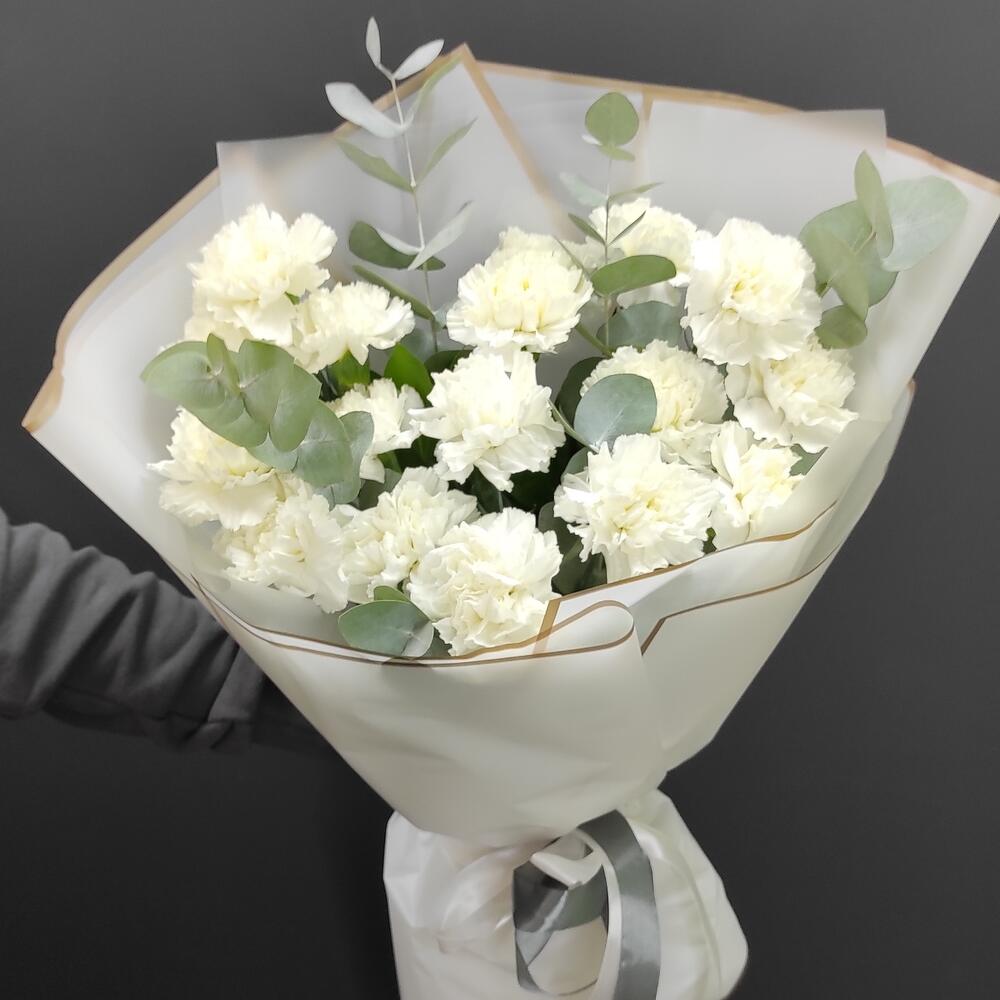 Диантус – 17 шт.Эвкалипт – 2 шт.Упаковка дизайнерская – 1 шт.
