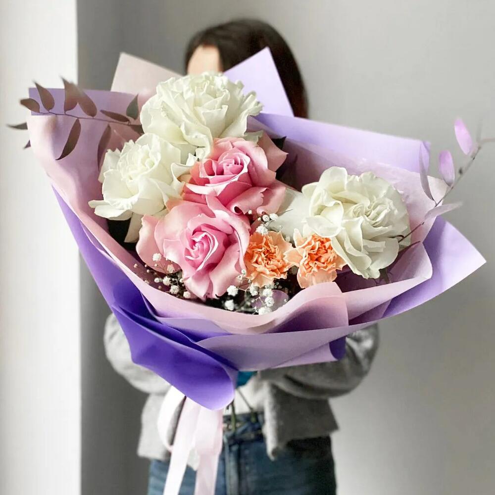 Гвоздики, Кустовые розы, Лизиантусы, Пионовидные розы, Розы