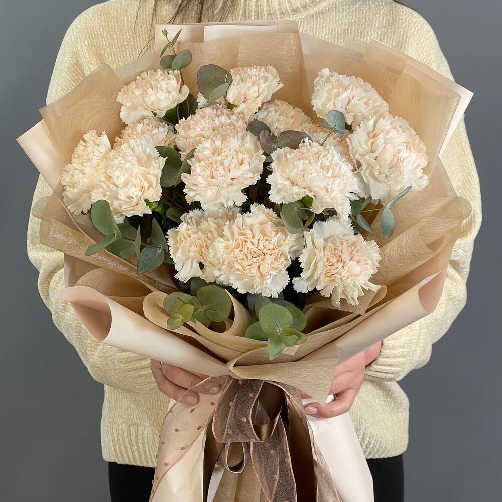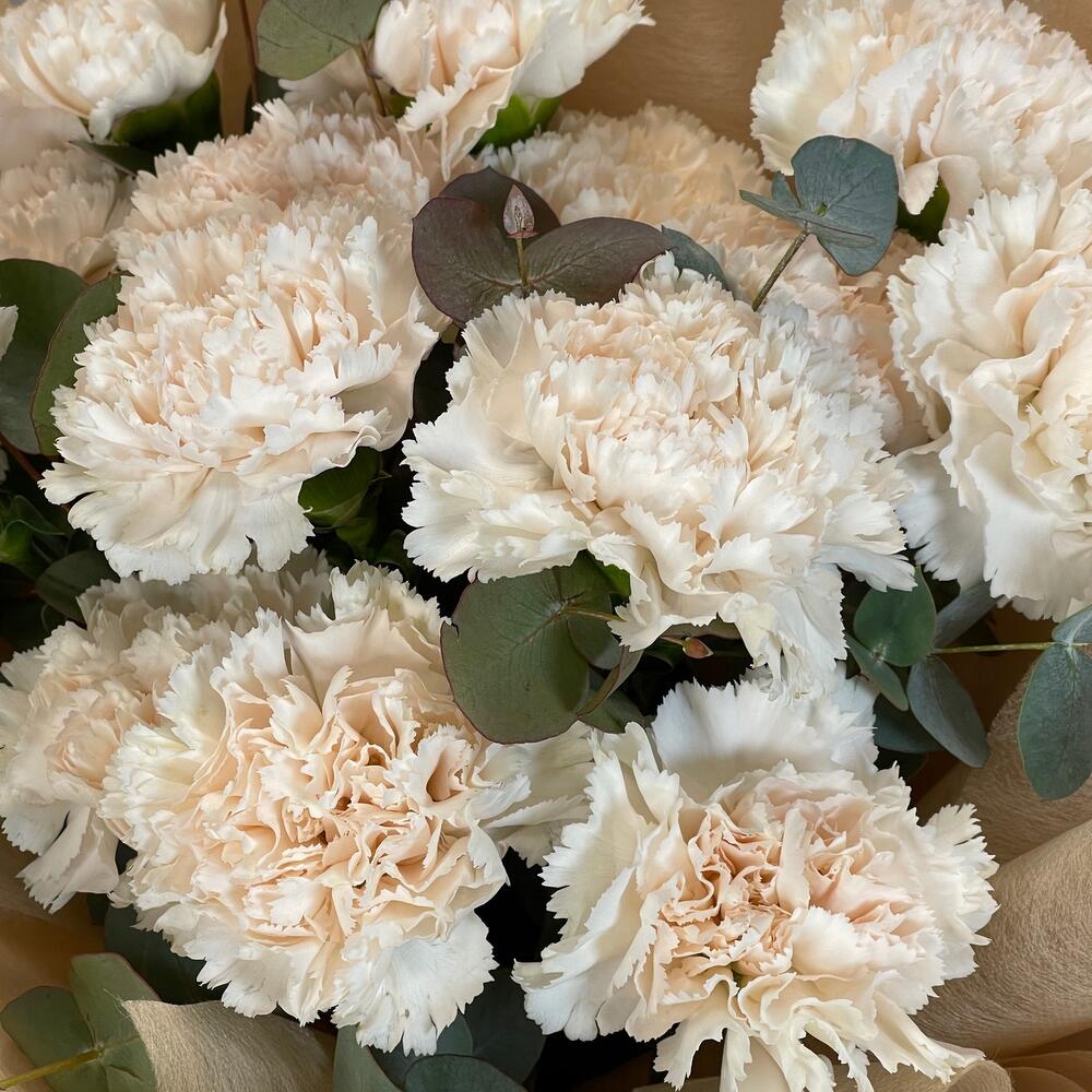 Букет с молочной гвоздикой «Взбитые сливки»