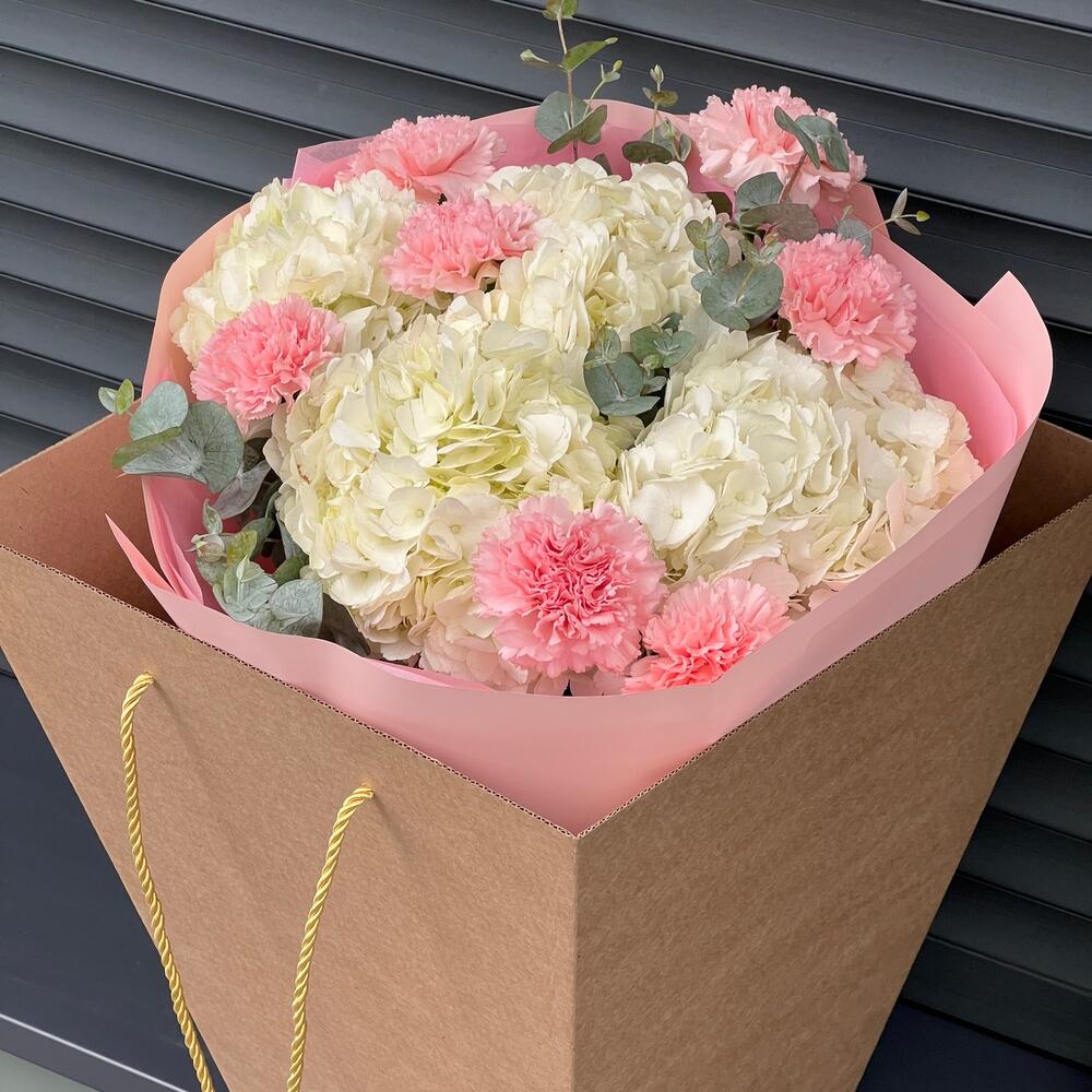 Гвоздики, Пионовидные розы, Розы