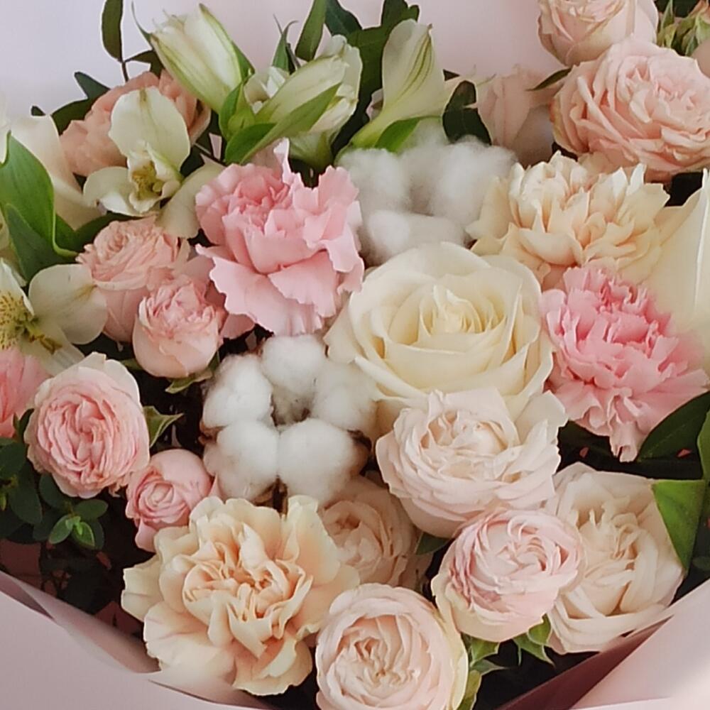 Гвоздики, Кустовые розы, Лизиантусы, Пионовидные розы, Розы