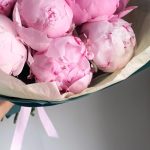 Букет из 9ти пионов в бирюзовой упаковке