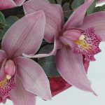 Орхидея цимбидиум бутон – 7 шт.Эвкалипт – 3 шт.Коробка цилиндр – 1 шт.Тишью – 1 шт.Лента репсовая – 1 шт.Лента органза – 1 шт.Флористическая губка (оазис) – 1 шт.