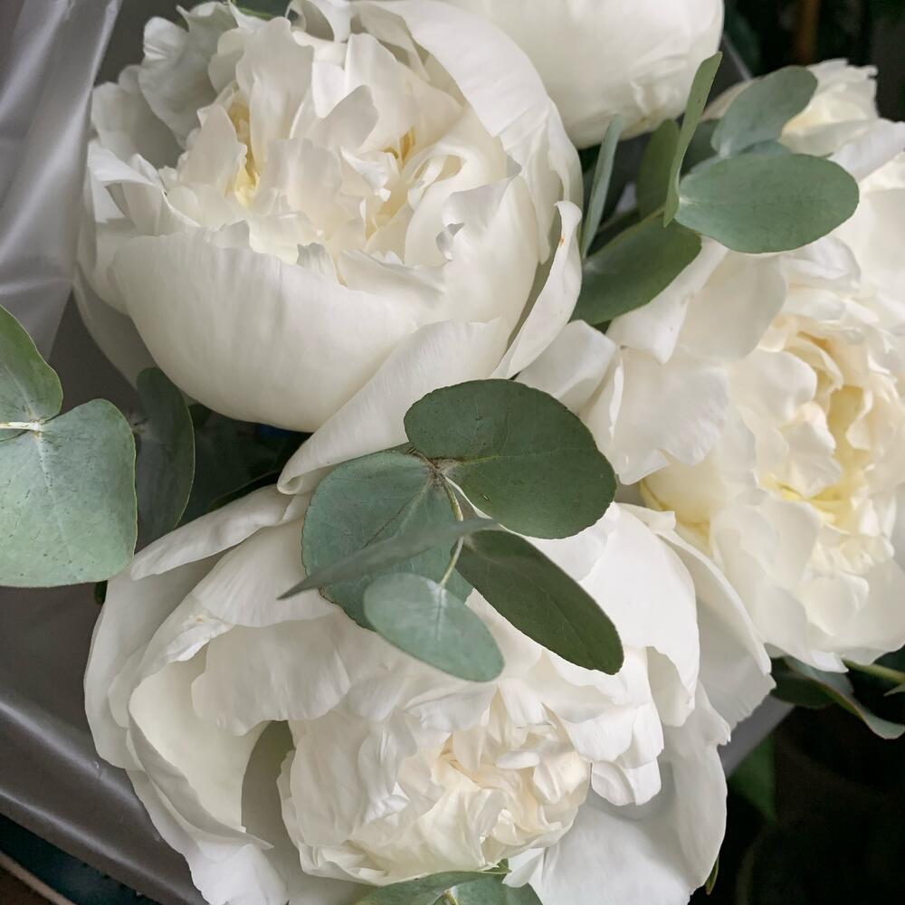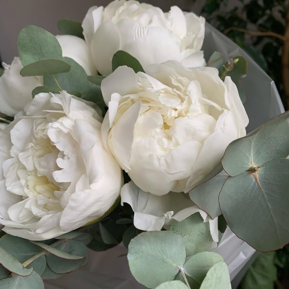 Лента атласная – 1 шт.Упаковка дизайнерская – 1 шт.Кризал (подкормка) – 1 шт.Аквапак – 1 шт.Транспортировочная коробка – 1 шт.инструкция по уходу за цветами – 1 шт.эвкалипт cineria пучок – 1 шт.пион duchess de nemours – 5 шт.