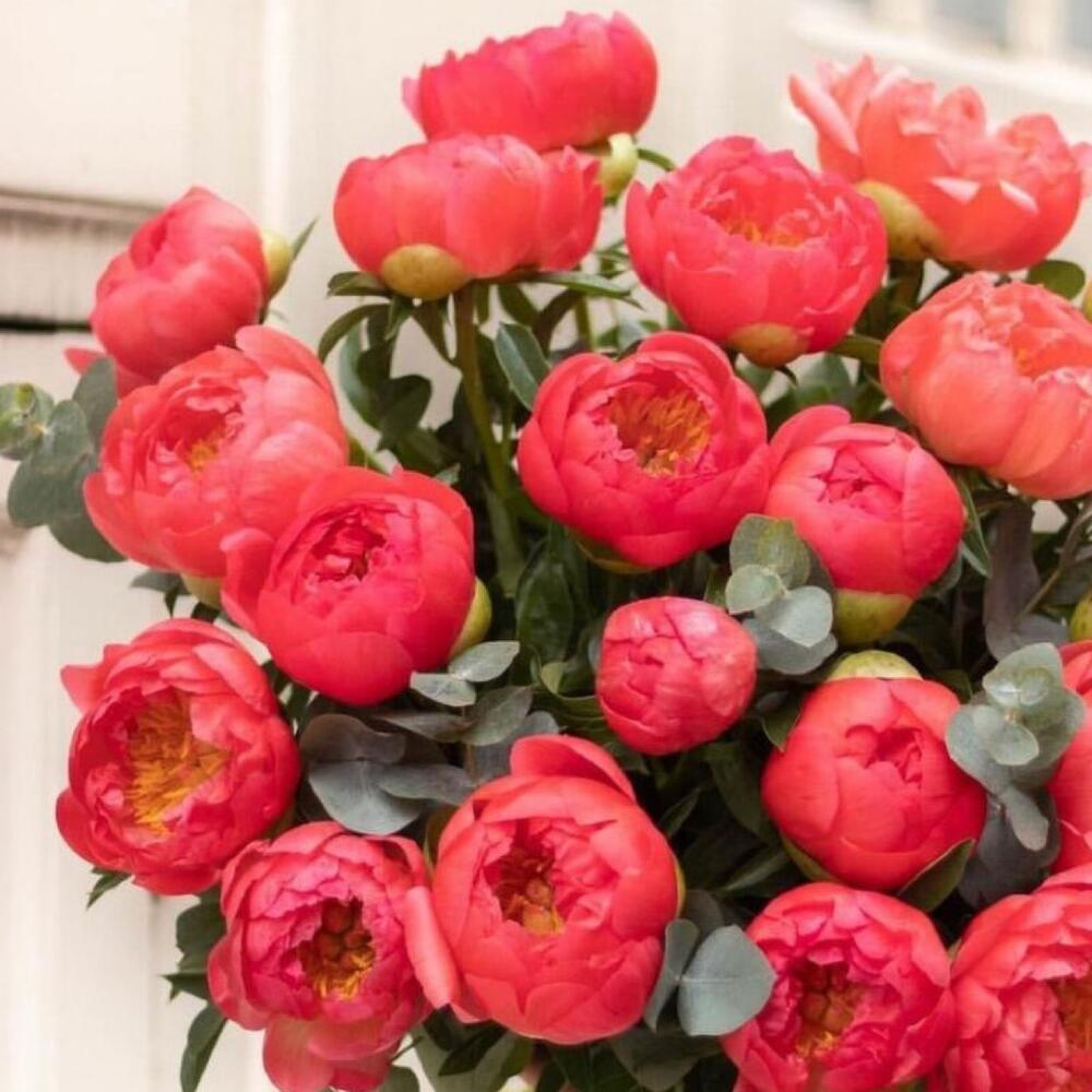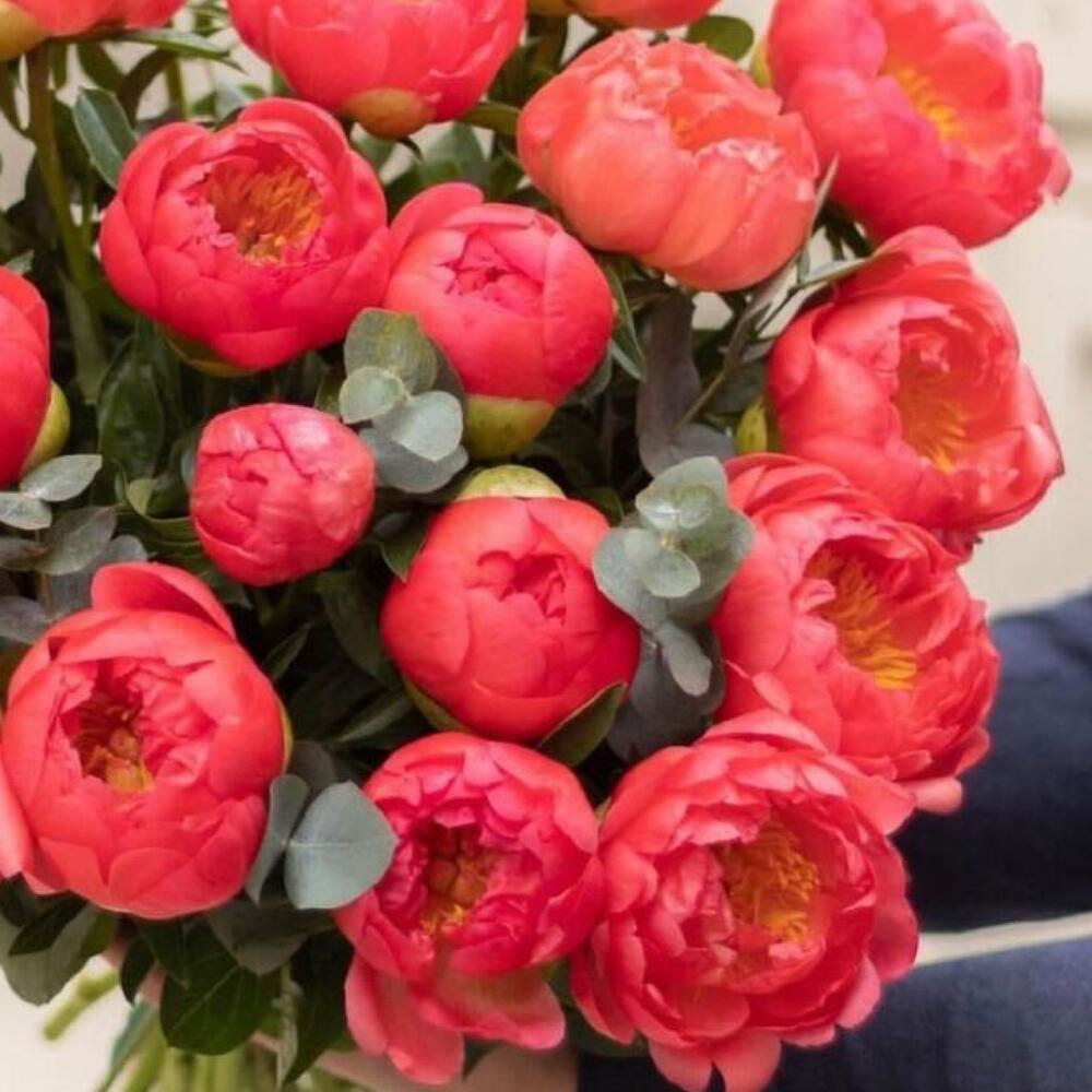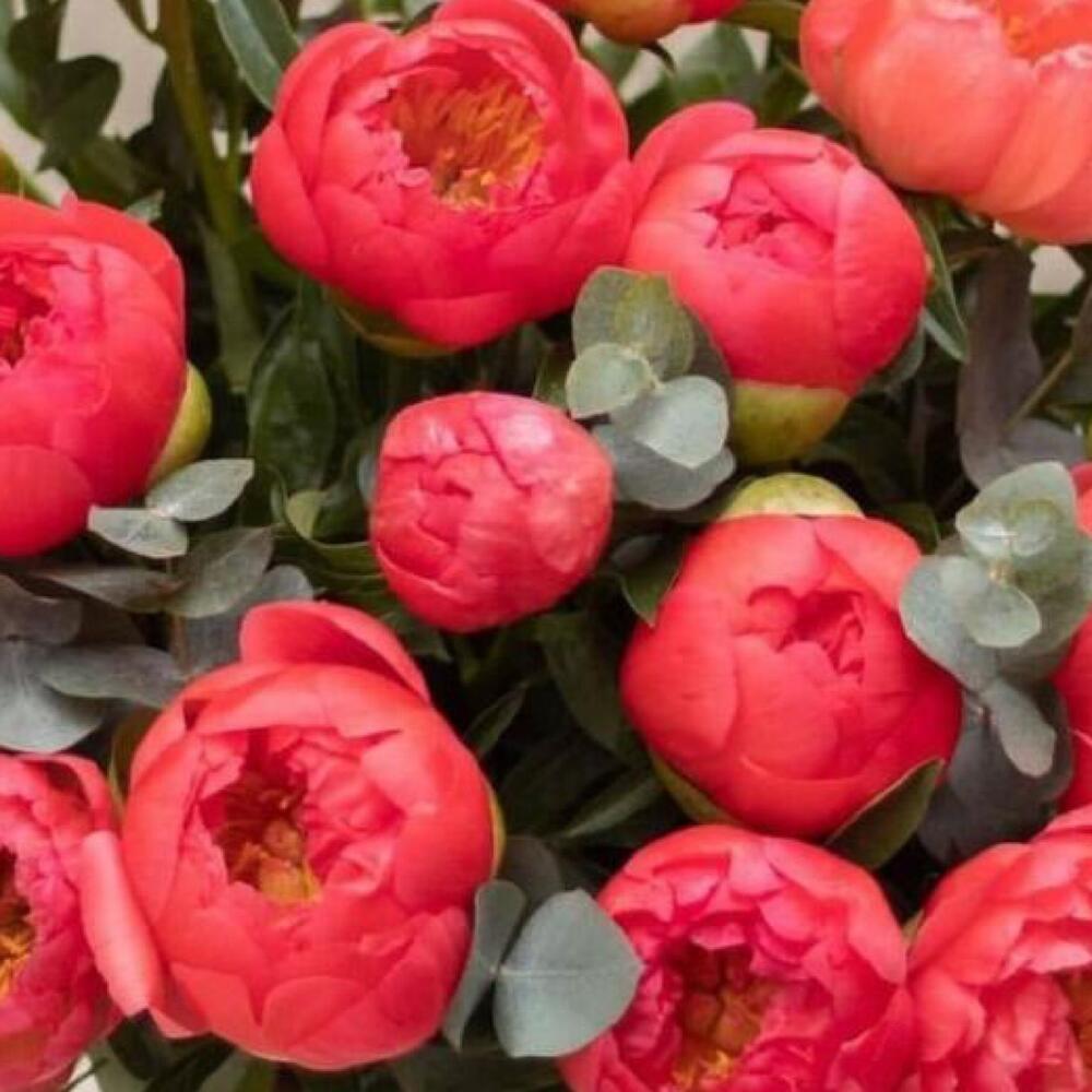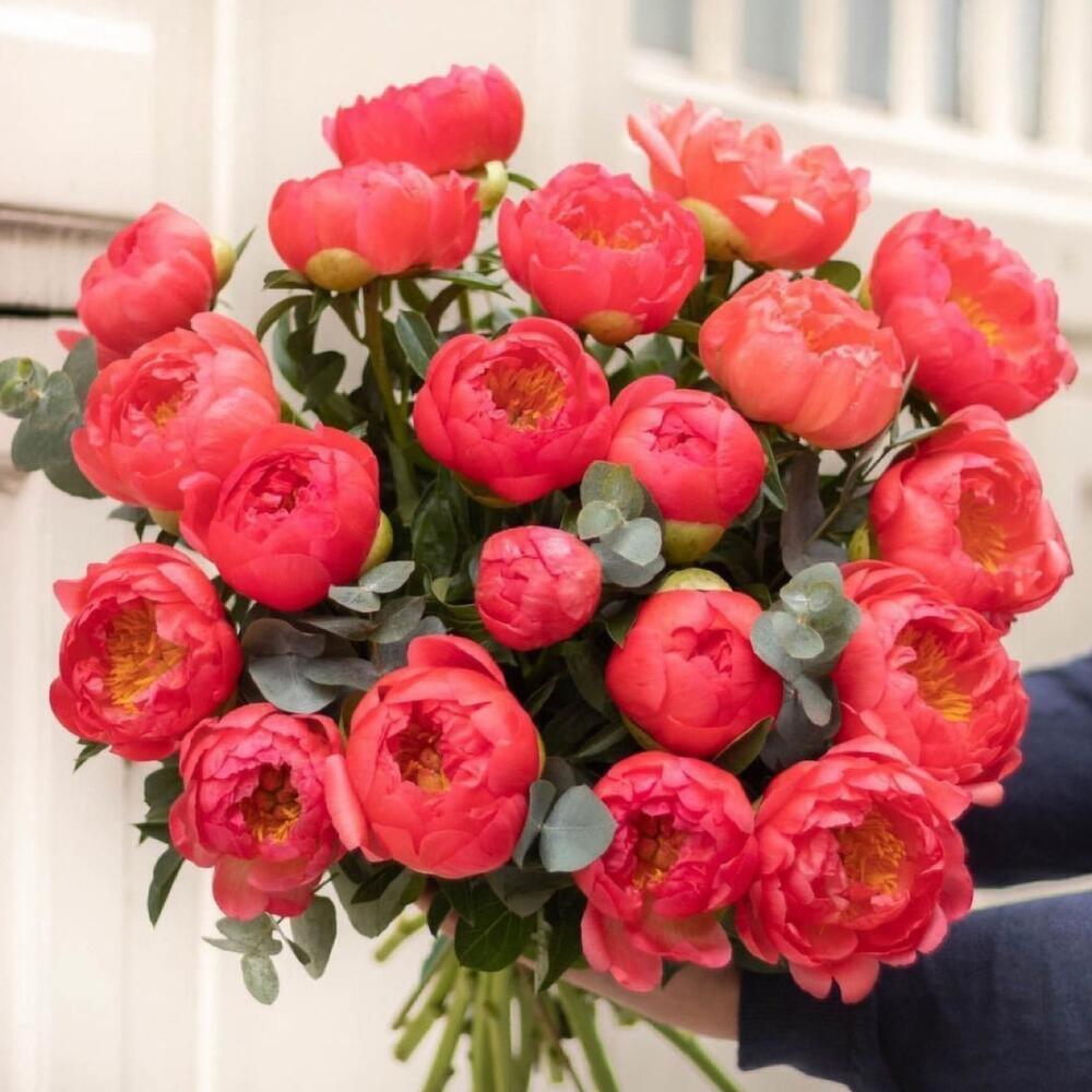 пионы Коралл шарм – 21 шт.Лента атласная – 2 шт.Открыточка с вашими пожеланиями – 1 шт.хорошее настроение – 100 шт.инструкция по уходу за цветами – 1 шт.коробка переноска – 1 шт.Кризал – 1 шт.