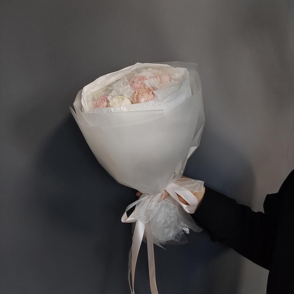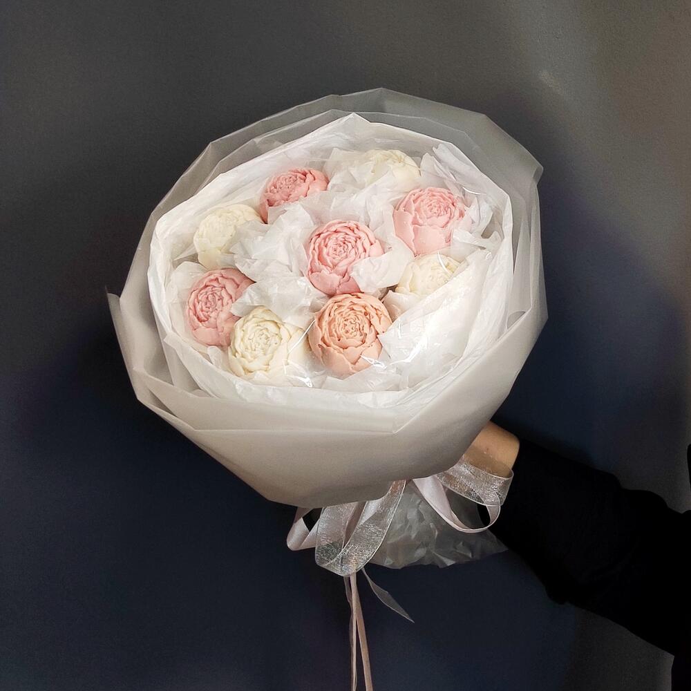 пион из белого бельгийского шоколада – 9 шт.уракрвка дизайнерская – 2 шт.
