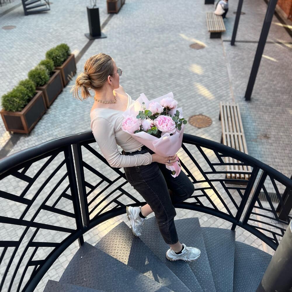 Букет «Текила-Любовь» (пионы с эвкалиптом)