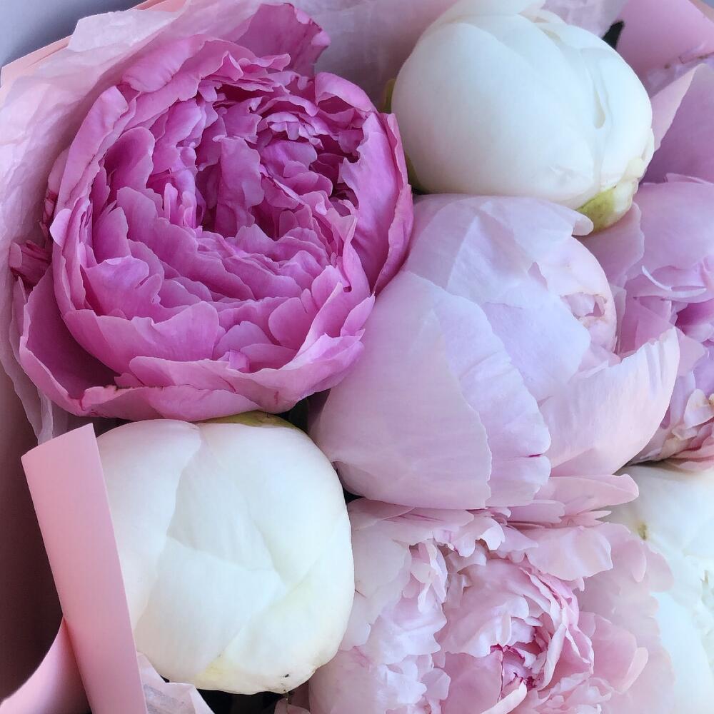 Пион Сара Бернар – 5 шт.Оформление – 1 шт.пион одиль – 4 шт.