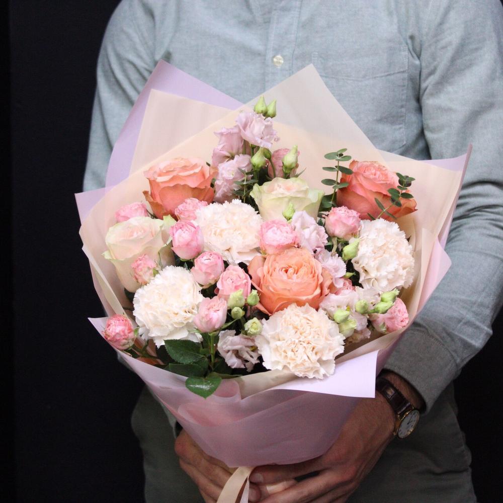 Категорий: Гвоздики, Кустовые розы, Лизиантусы, Пионовидные розы, Розы