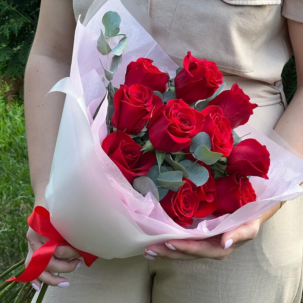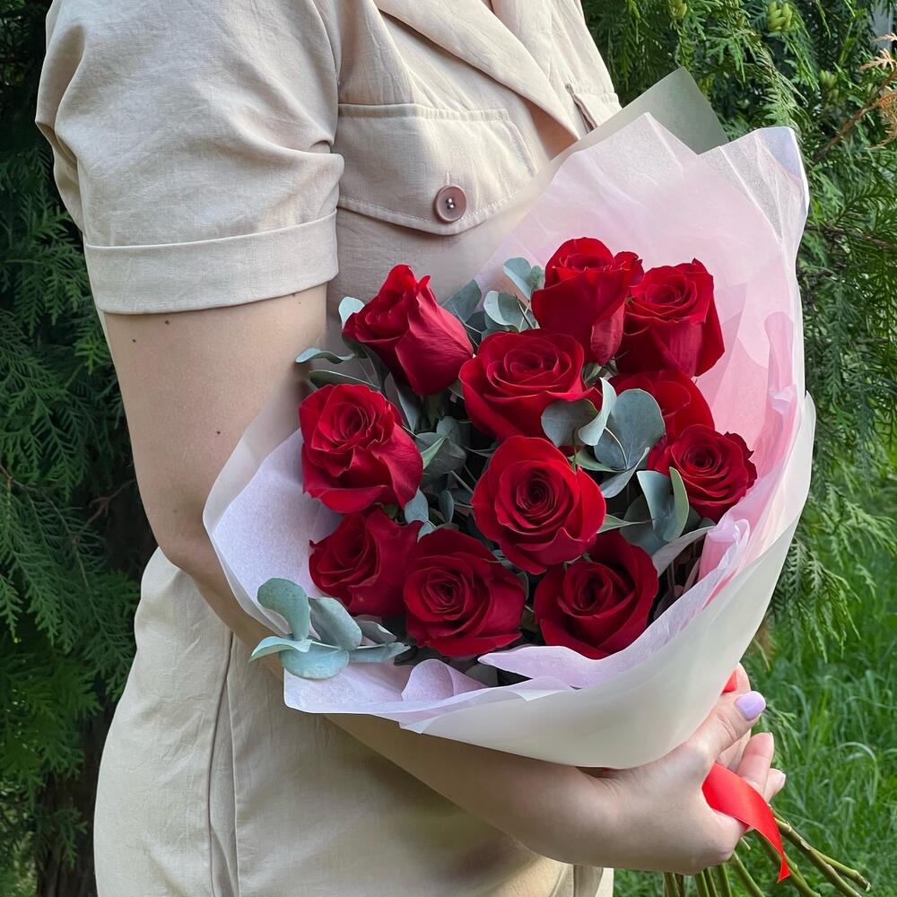 Букет из 11 Роз с эвкалиптом