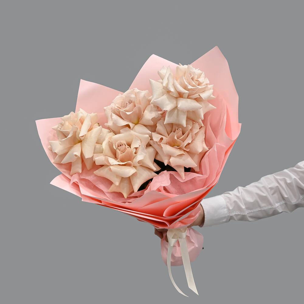 Букет из 5 кремовых французских роз