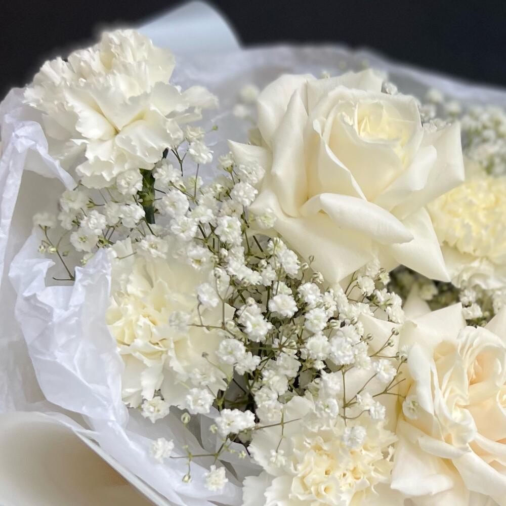 Букет из белой розы диантусов и Гипсофилы