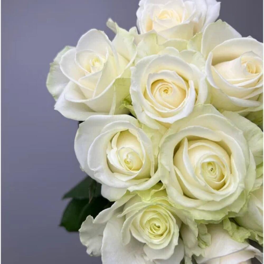 Лента атласная – 1 шт. Открытка – 1 шт. розы белые – 11 шт.