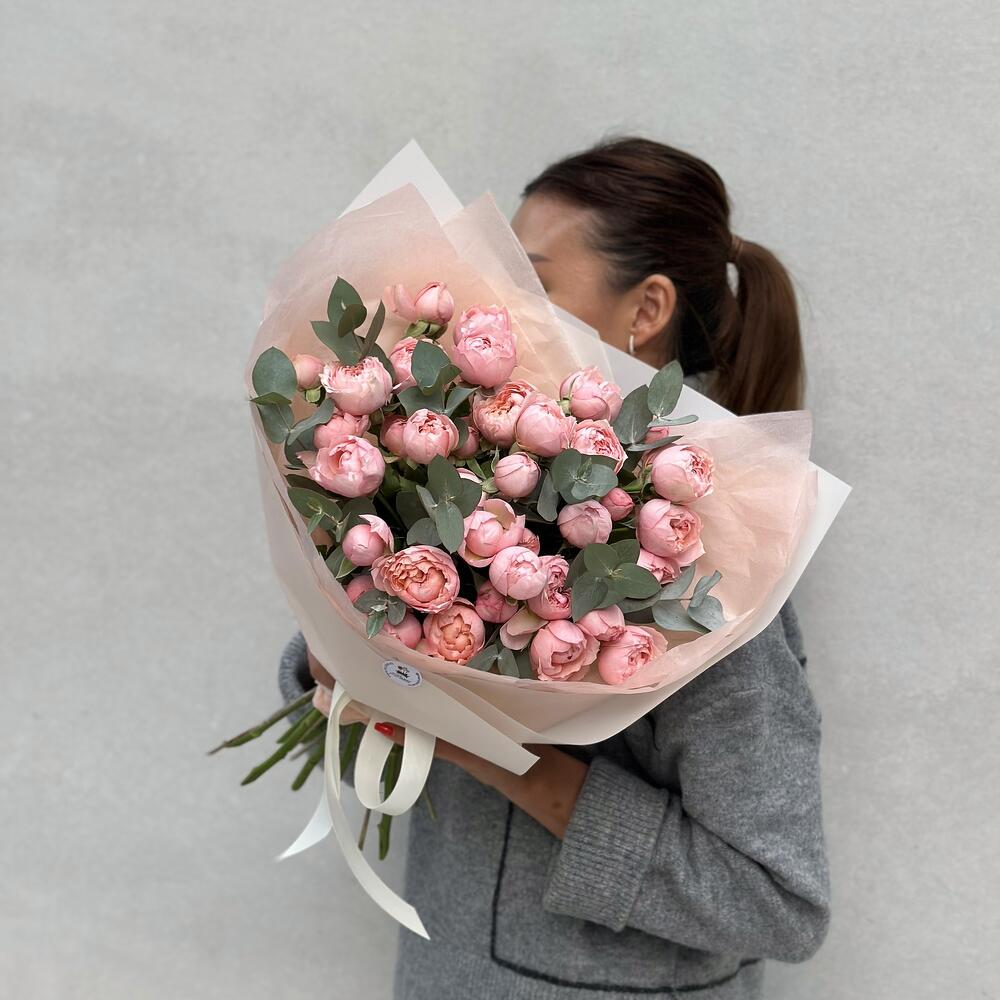Альстромерии, Кустовые розы, Лизиантусы, Пионовидные розы, Розы, Ромашки