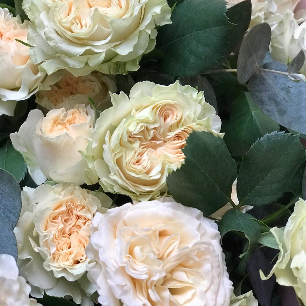 “Эвкалиптическая роскошь” гортензия и пионовидная кустовая роза