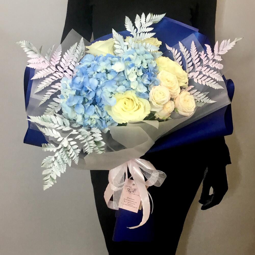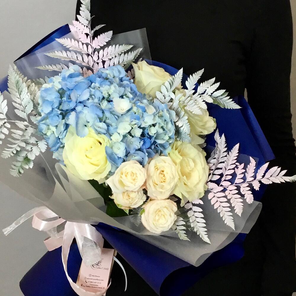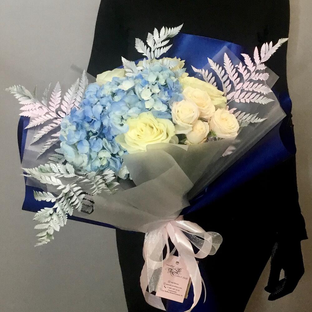 Букет с голубой гортензией "Космос"