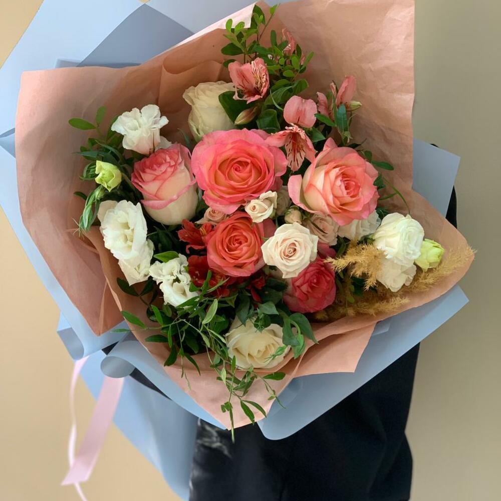 Альстромерии, Кустовые розы, Лизиантусы, Пионовидные розы, Розы, Ромашки