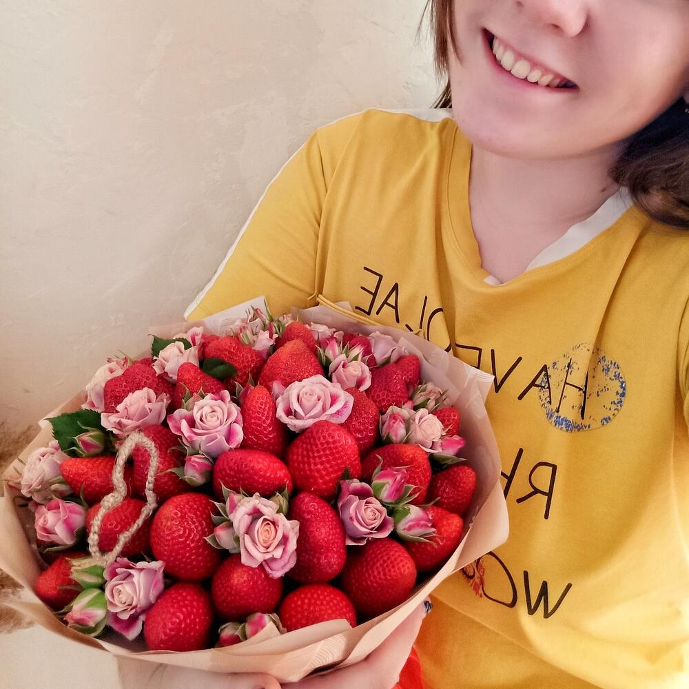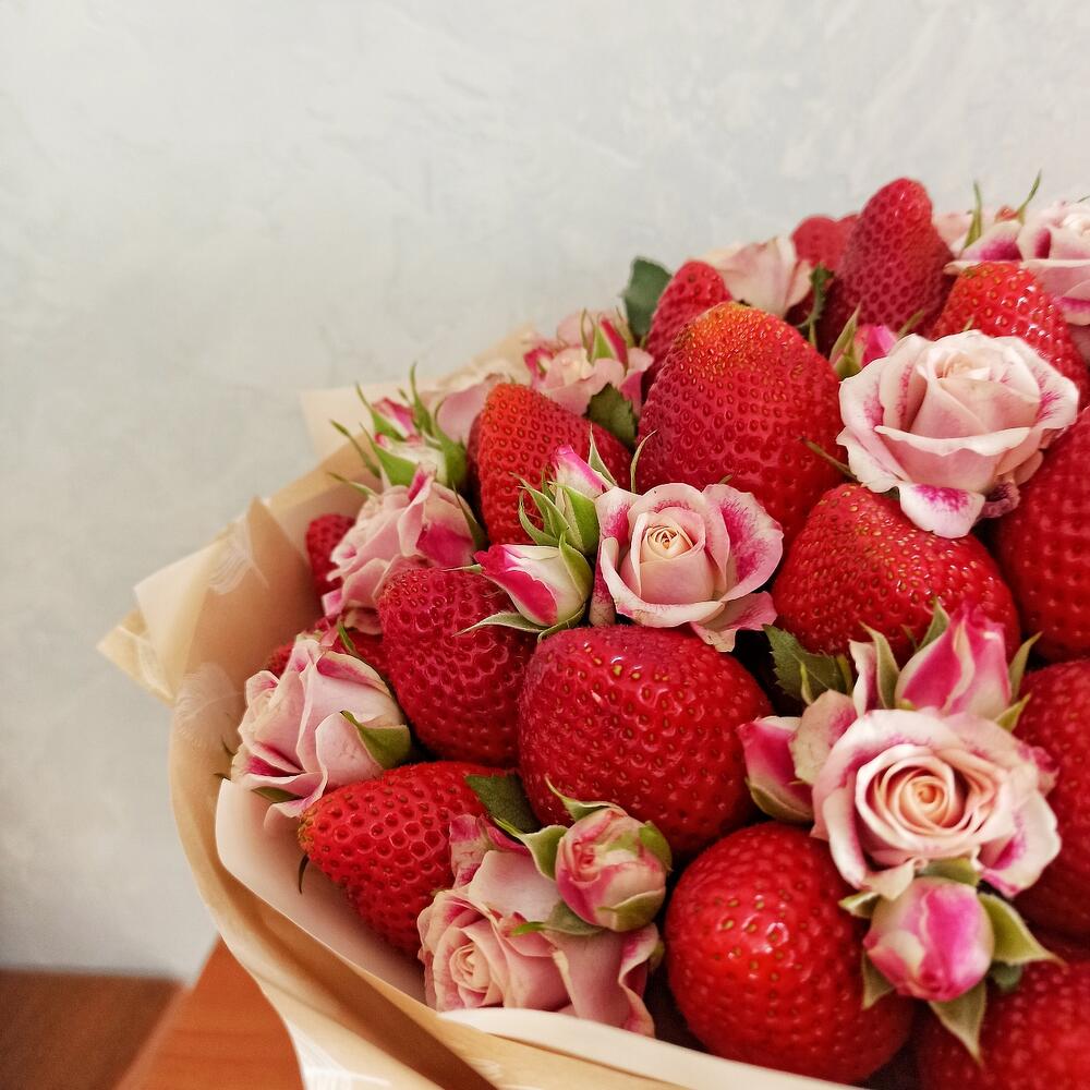 Роза кустовая розовая – 3 шт.клубника крупная отборная – 800 гр.