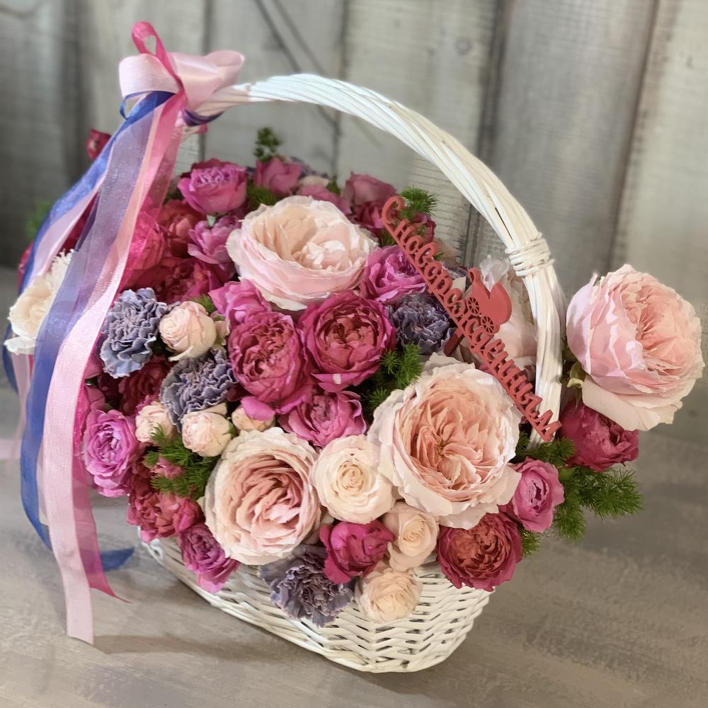 Метки: от 5000 руб, цветы в корзине