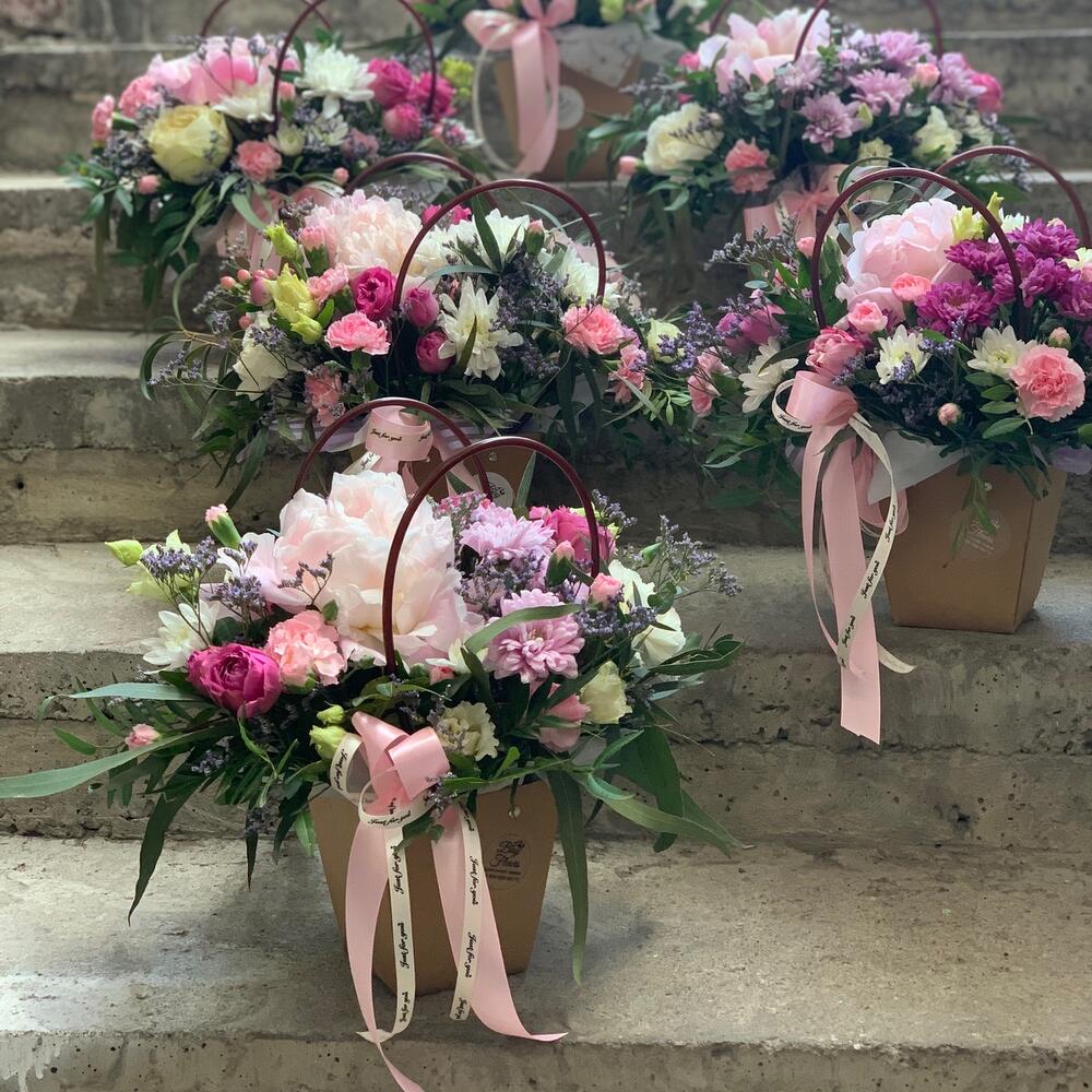 Категорий: Гвоздики, Кустовые розы, Лизиантусы, Пионы, Розы, Хризантемы