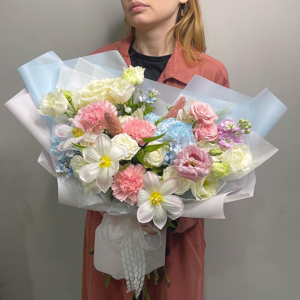 Категорий: Альстромерии, Гвоздики, Кустовые розы, Лизиантусы, Розы, Сухоцвет, Тюльпаны