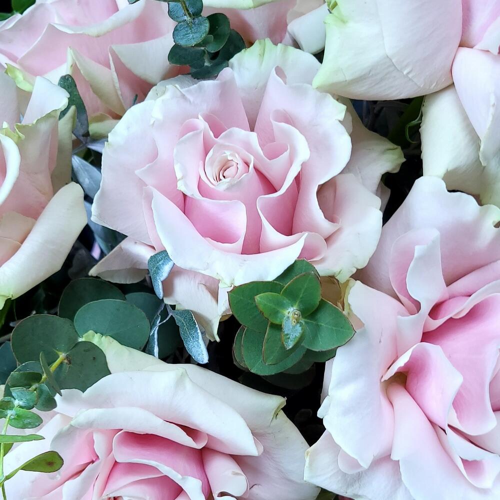 “Эвкалиптическая роскошь” гортензия и пионовидная кустовая роза