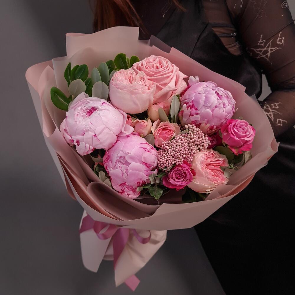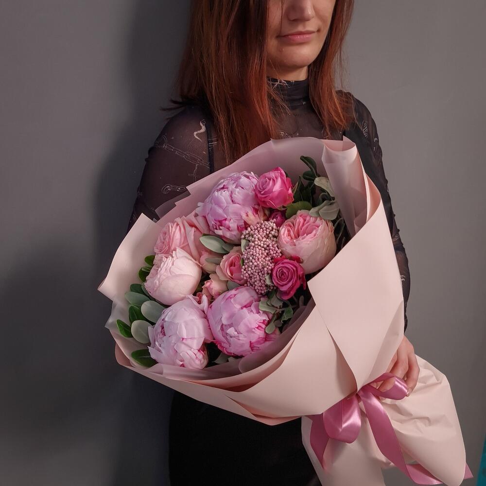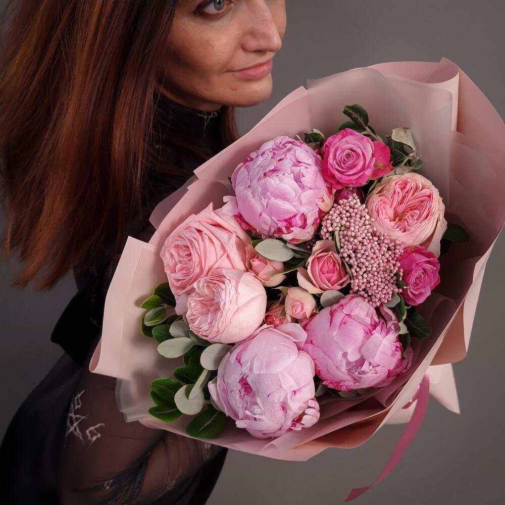 Гвоздики, Кустовые розы, Лизиантусы, Пионовидные розы, Розы