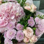 Розовый букет с французской розой и хризантемой