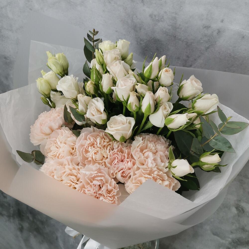 Гвоздики, Лизиантусы, Розы