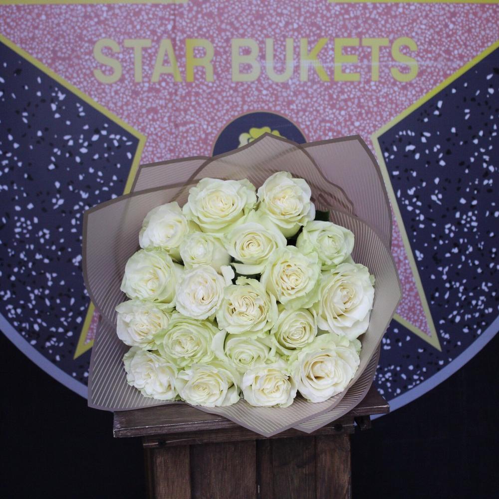 Роза Мондиаль – 19 шт.Пленка дизайнерская – 3 шт.Лента атласная – 1 шт.