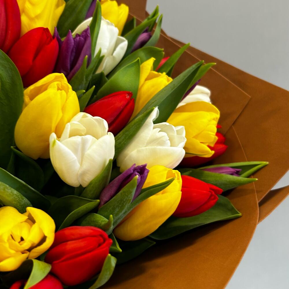 Букет из 35 разноцветного тюльпана