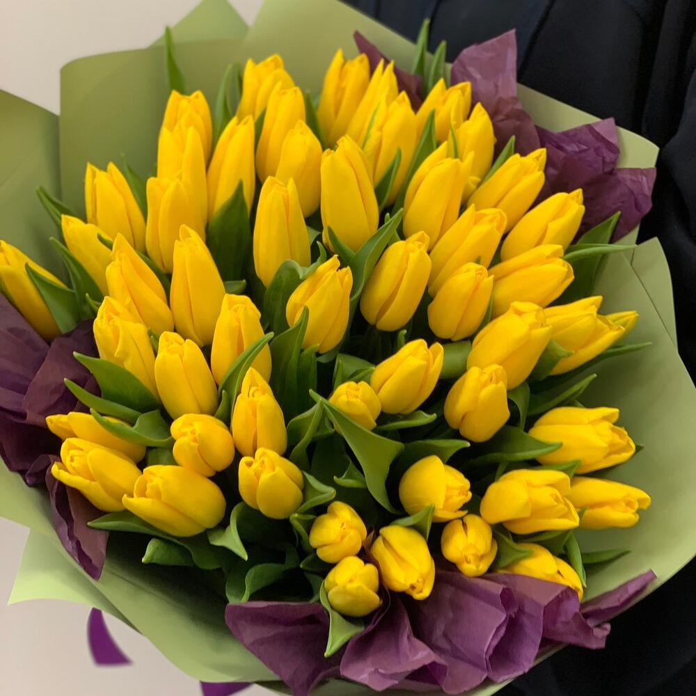 тюльпаны – 51 шт.Дизайнерская упаковка – 2 шт.